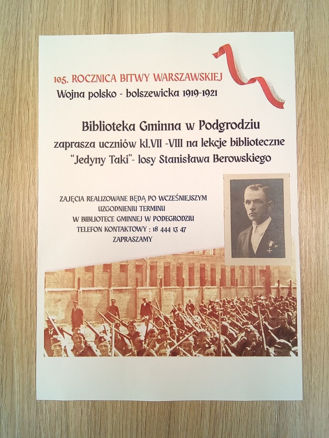 Biblioteka Gminna w Podegrodziu zaprasza uczniów klas VII – VIII na lekcje biblioteczne „Jedyny Taki” – losy Stanisława Berowskiego.