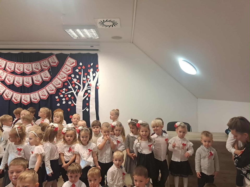 Jest to wydarzenie organizowane przez MEN, na które zaproszono wszystkie szkoły i przedszkola w Polsce oraz polskie placówki za granicą. O symbolicznej godzinie 11:11 cała społeczność przedszkolna zebrała się w jednej z sal, aby wspólnie odśpiewać „Mazurka Dąbrowskiego” i w ten sposób uczcić 107 rocznicę odzyskania niepodległości przez Polskę. Było bardzo odświętnie, a dzieciom dała się odczuć powaga tej doniosłej chwili.